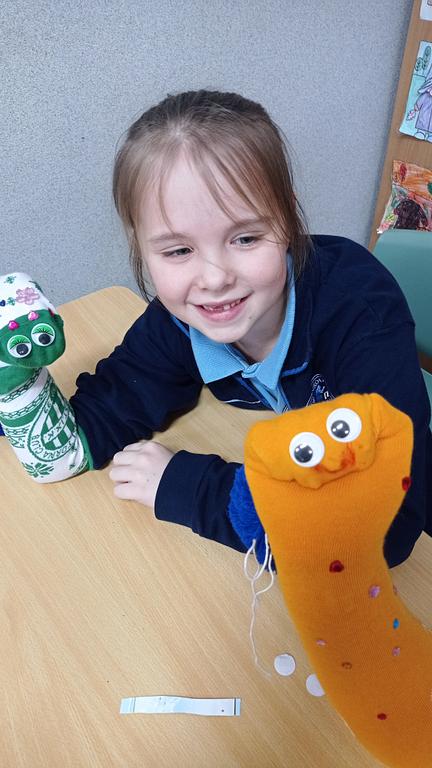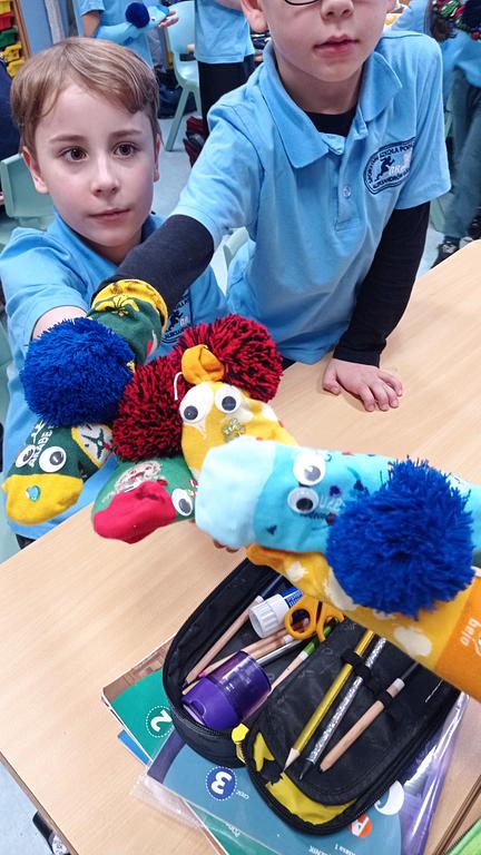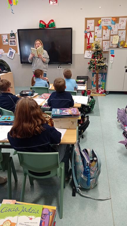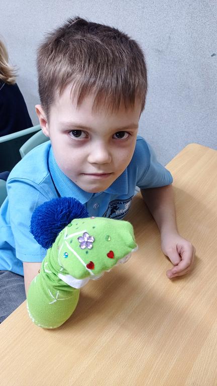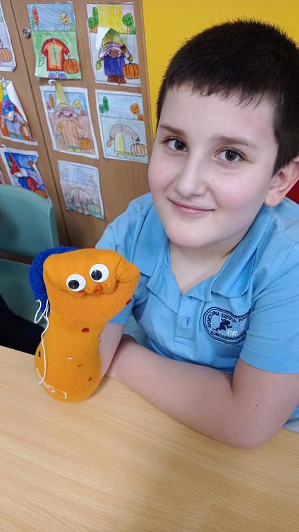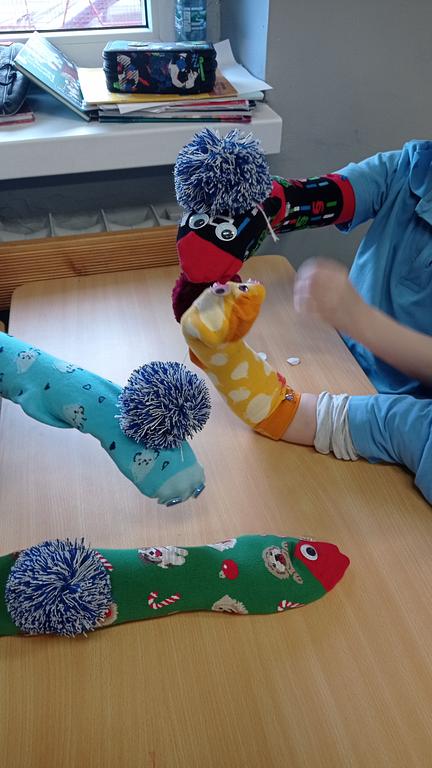 28.01 spotkała nas miła niespodzianka – odwiedziła nas mama Huberta. Przeczytała uczniom fragment swojej ulubionej książki, nawiązując do aktualnie omawianej lektury „Niesamowite przygody dziesięciu skarpetek” autorstwa Justyny Bednarek. Po wspólnym czytaniu dzieci wzięły udział w zajęciach plastycznych, podczas których z ogromnym zaangażowaniem i radością tworzyły własne skarpetkowe przytulanki.
