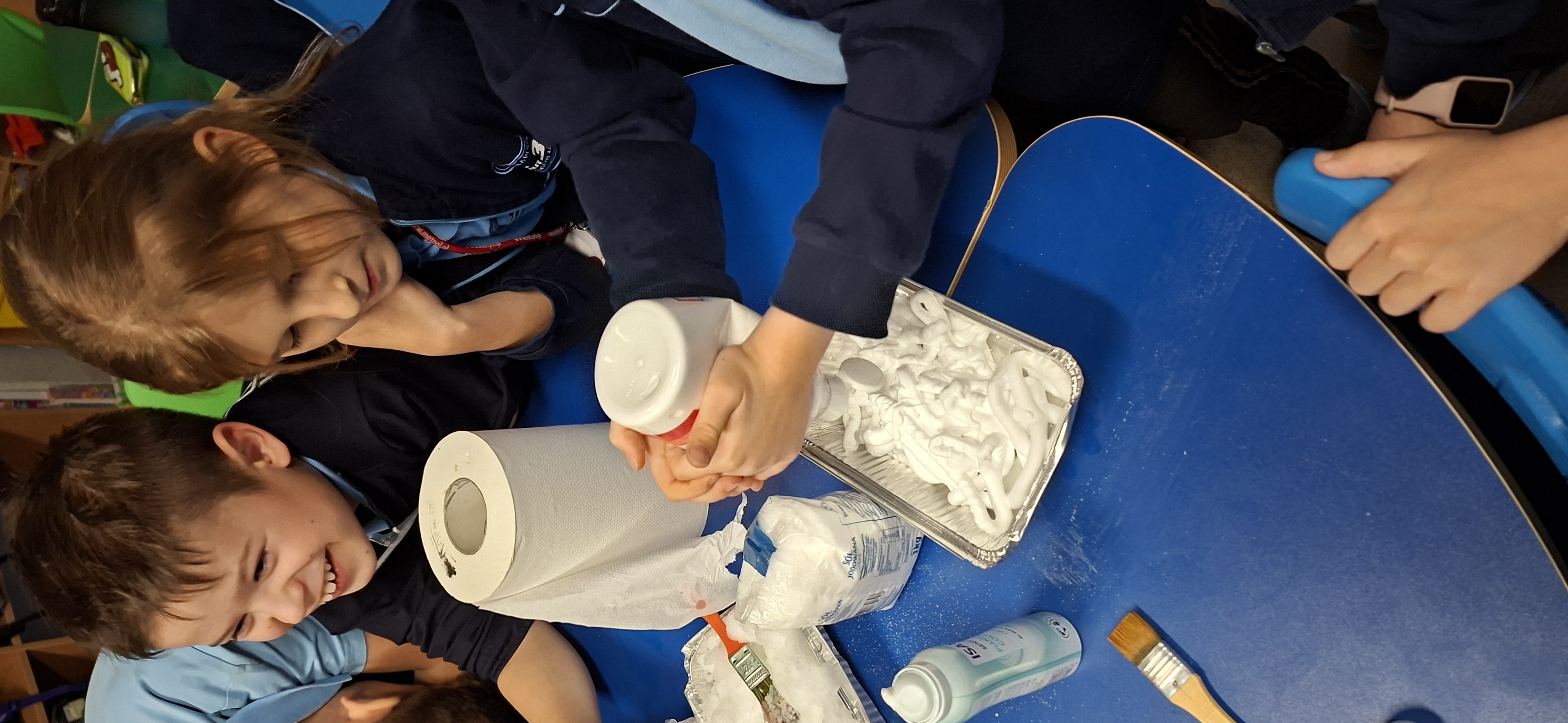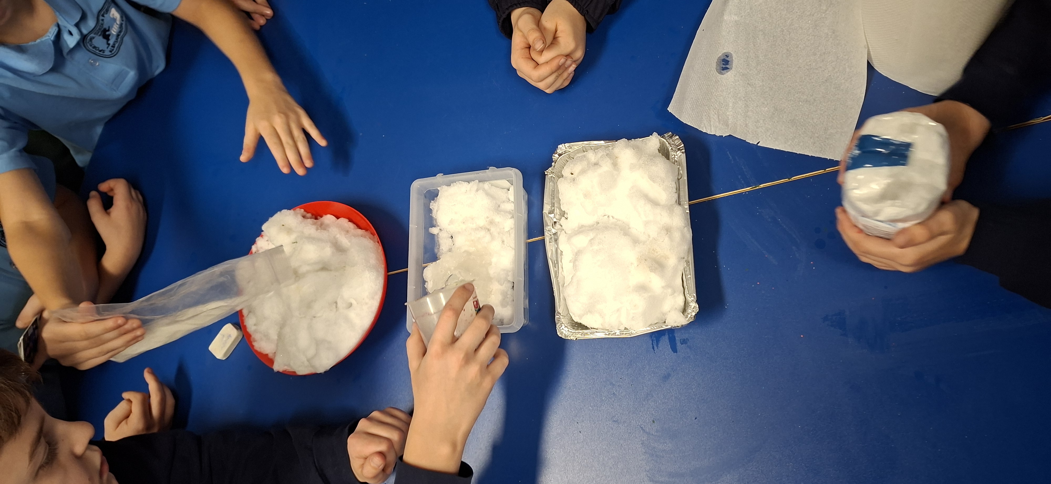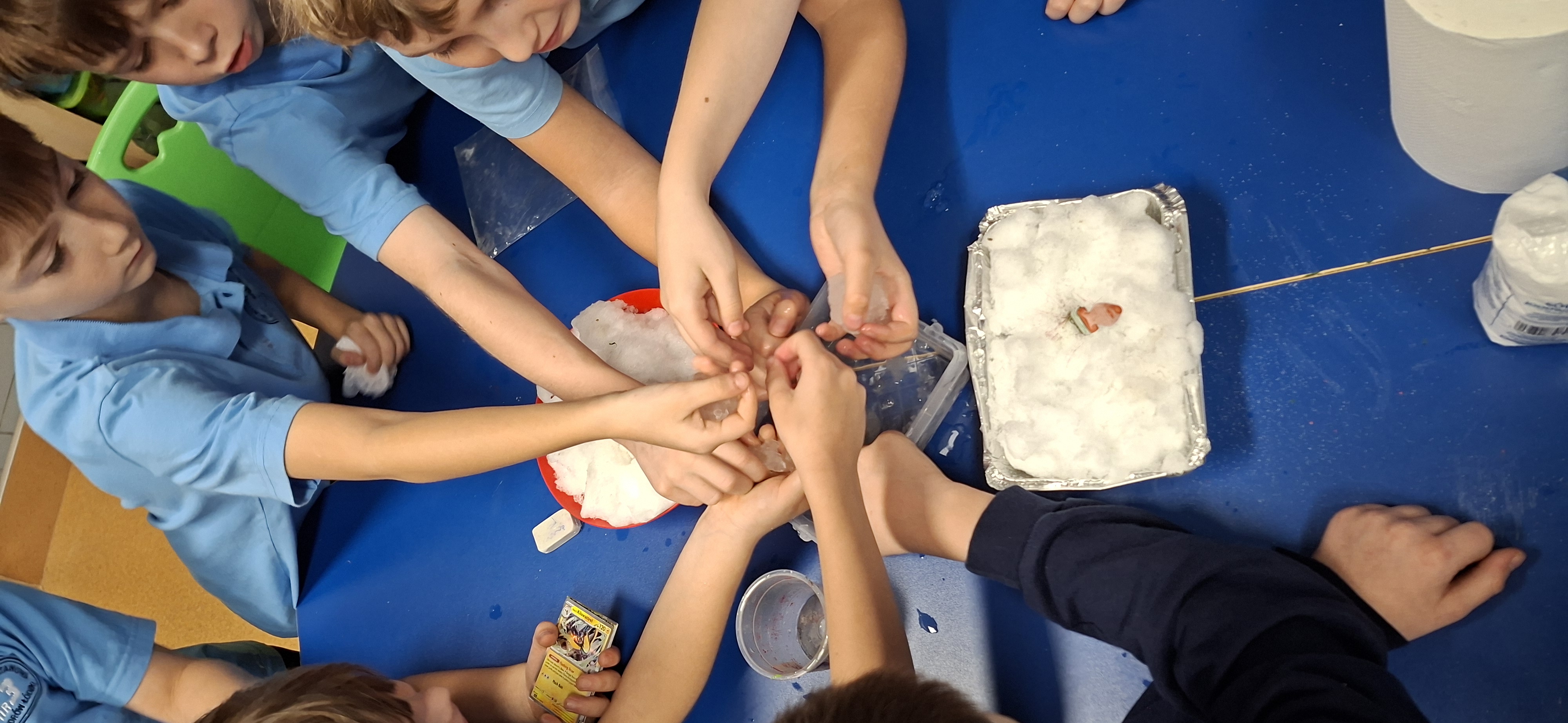 Gdy już zimno dało sie we znaki, uczniowie zabrali do szkolnej świetlicy trochę śniegu i wykonały doświadczenia z jego roztapianiem.