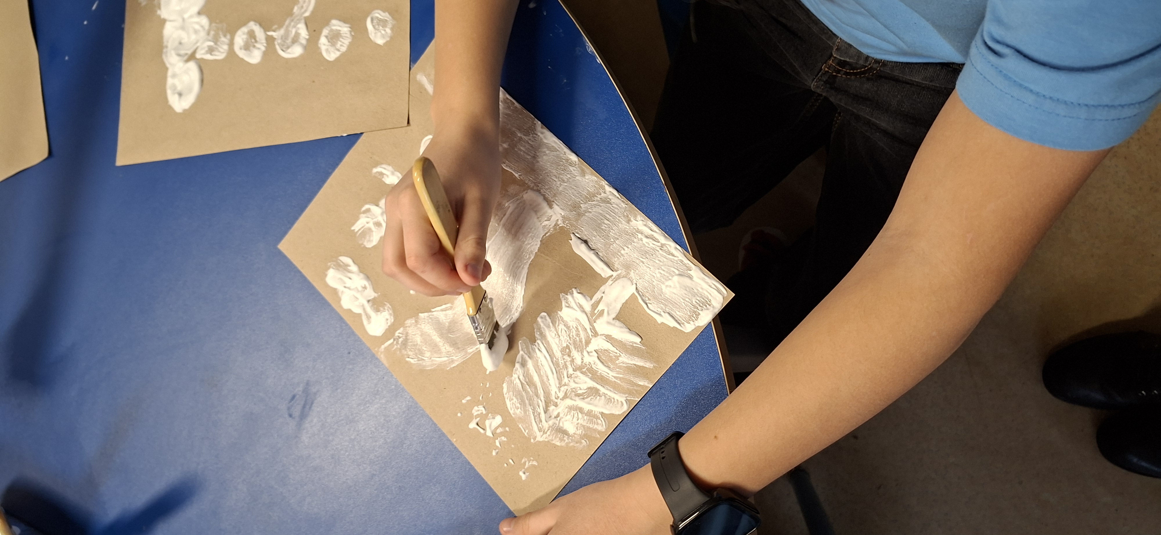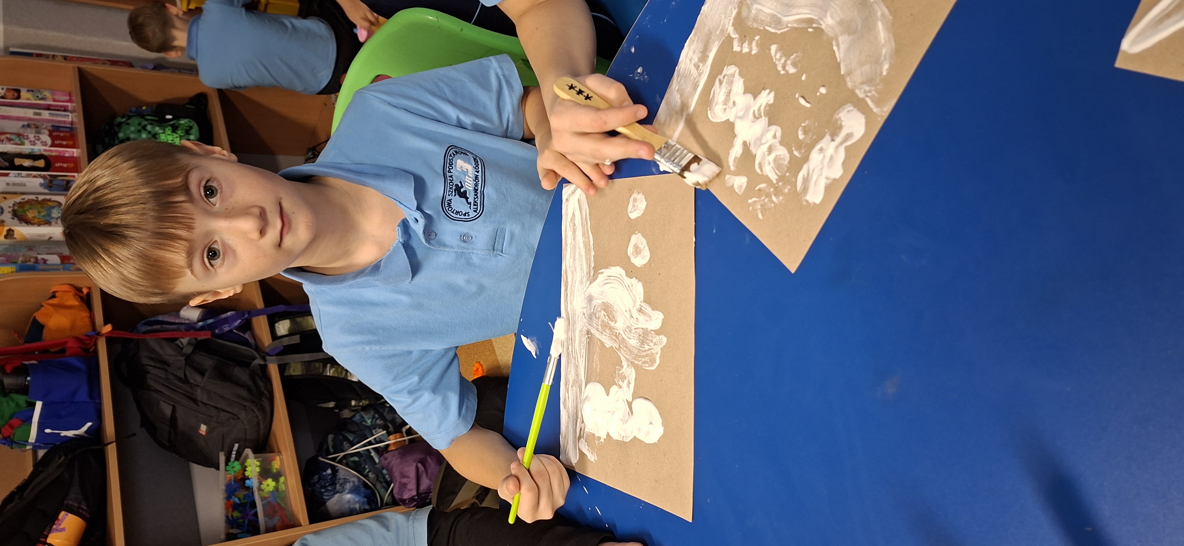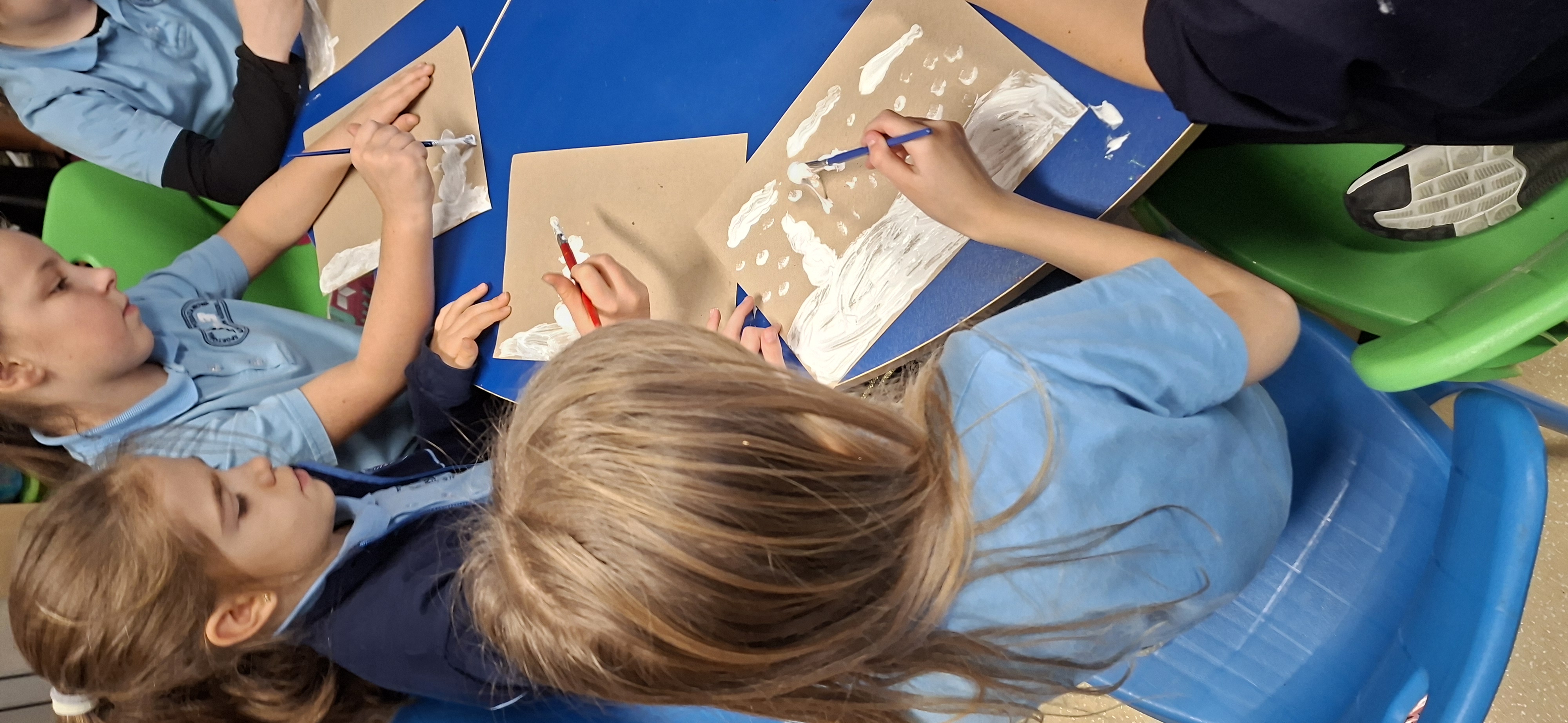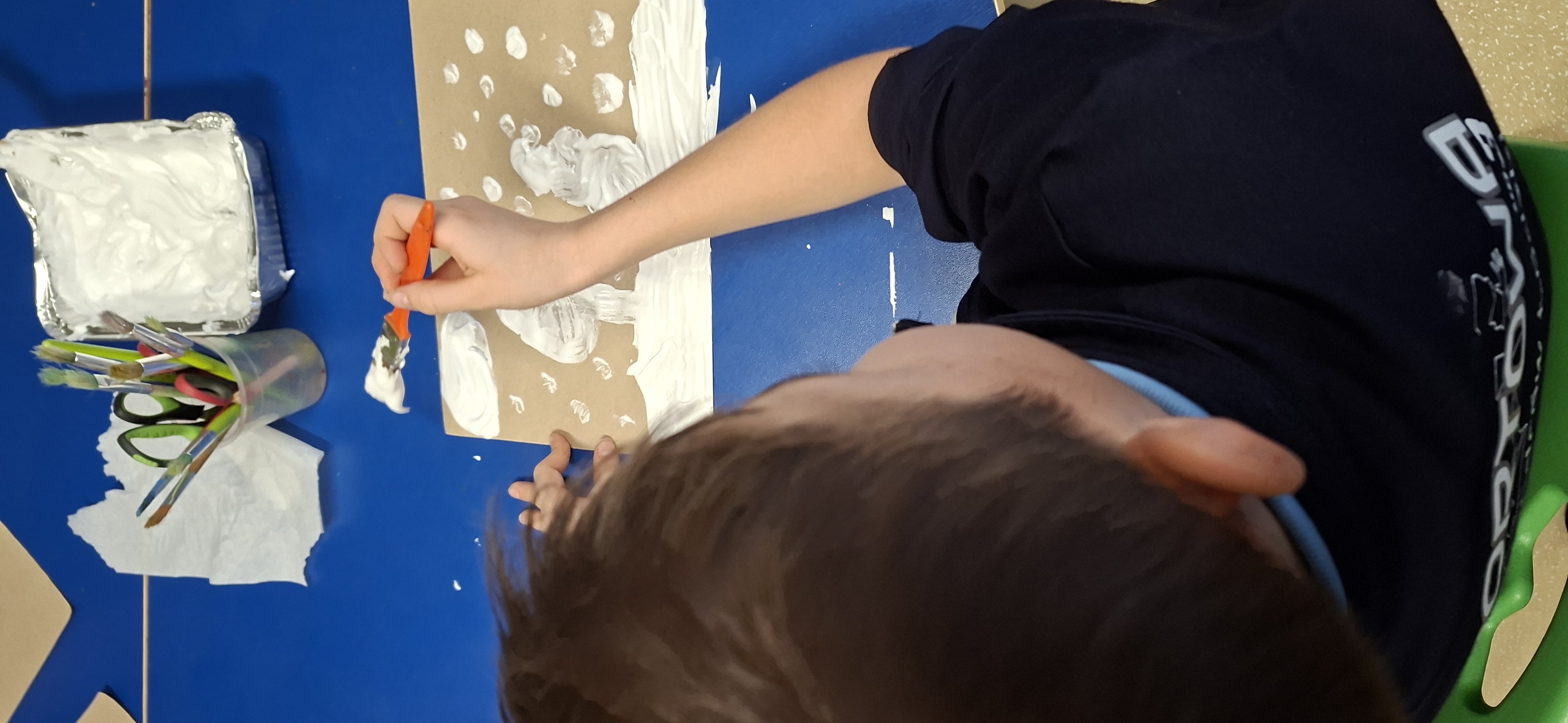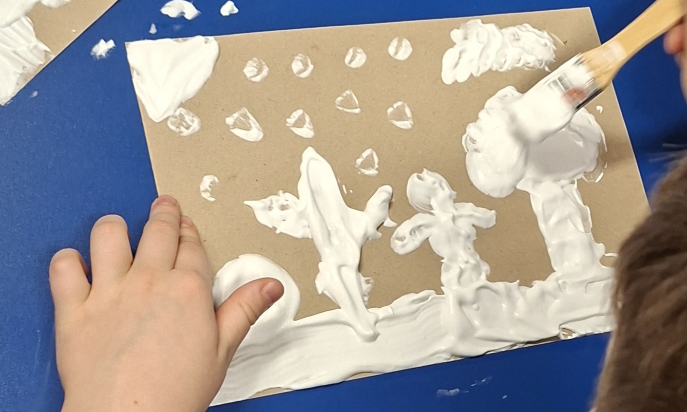 Gdy już prawdziwy śnieg się rozpuścił, sami wykonaliśmy sztuczny śnieg i namalowaliśmy iście zimowe krajobrazy 3D.