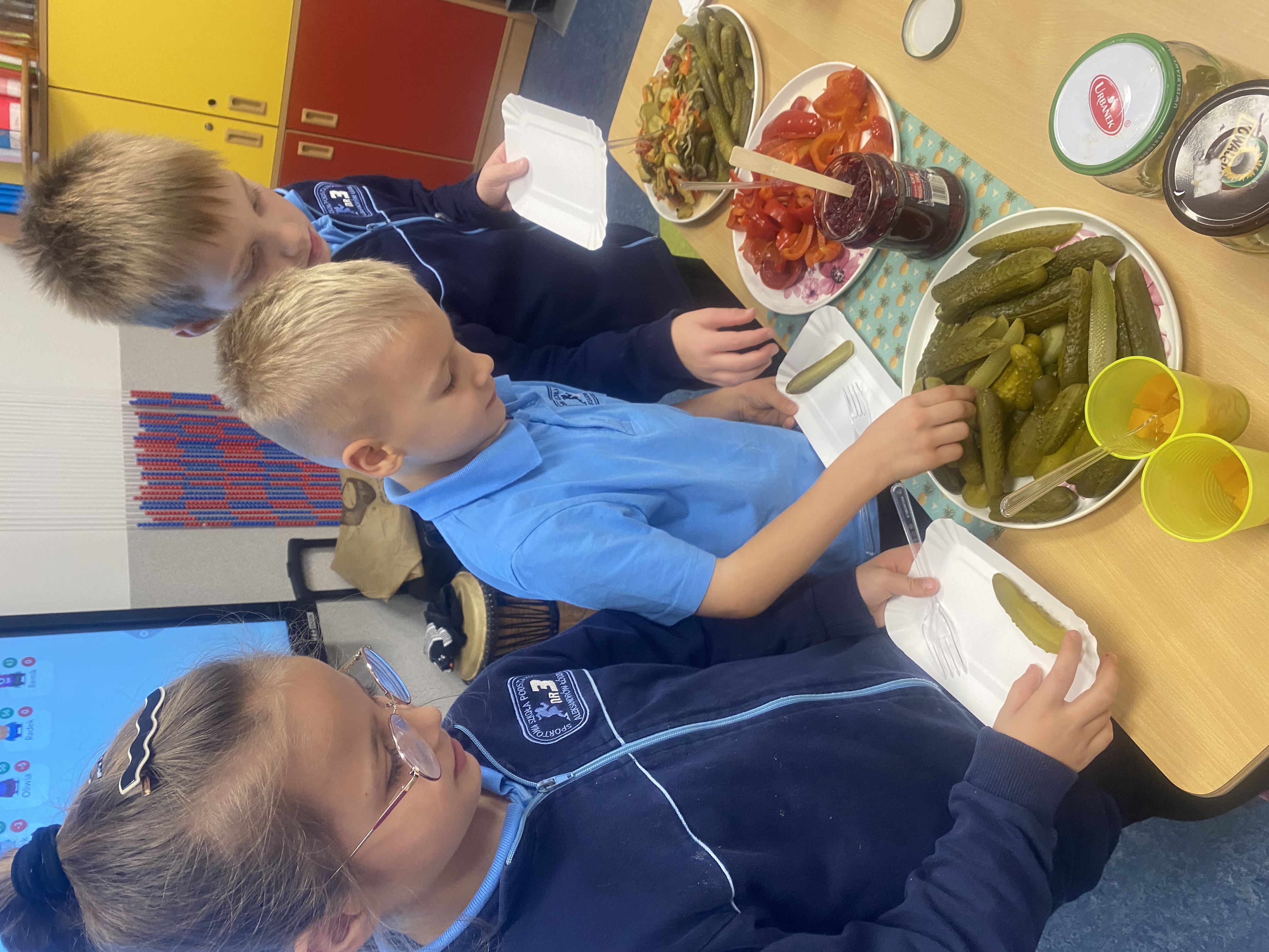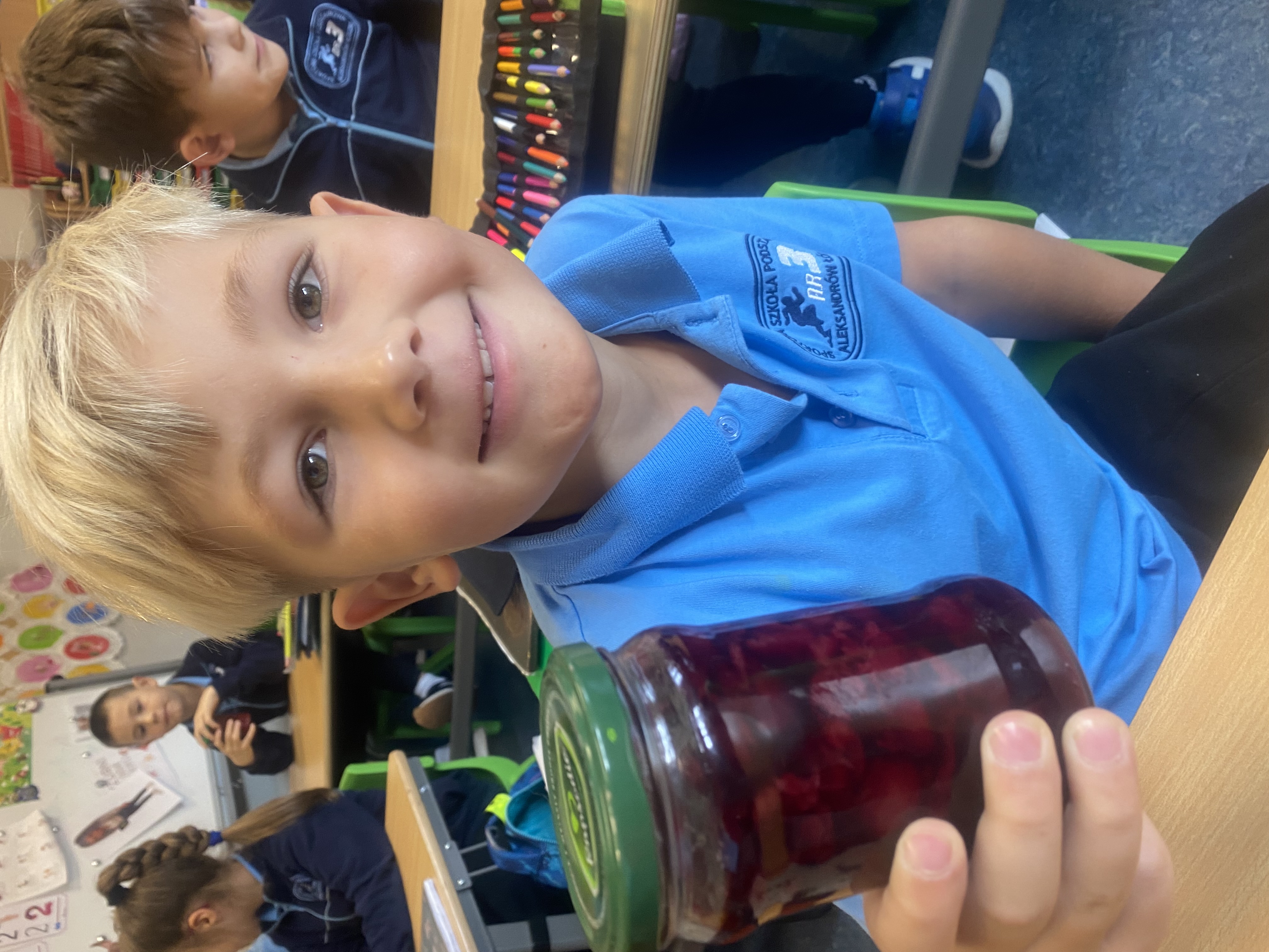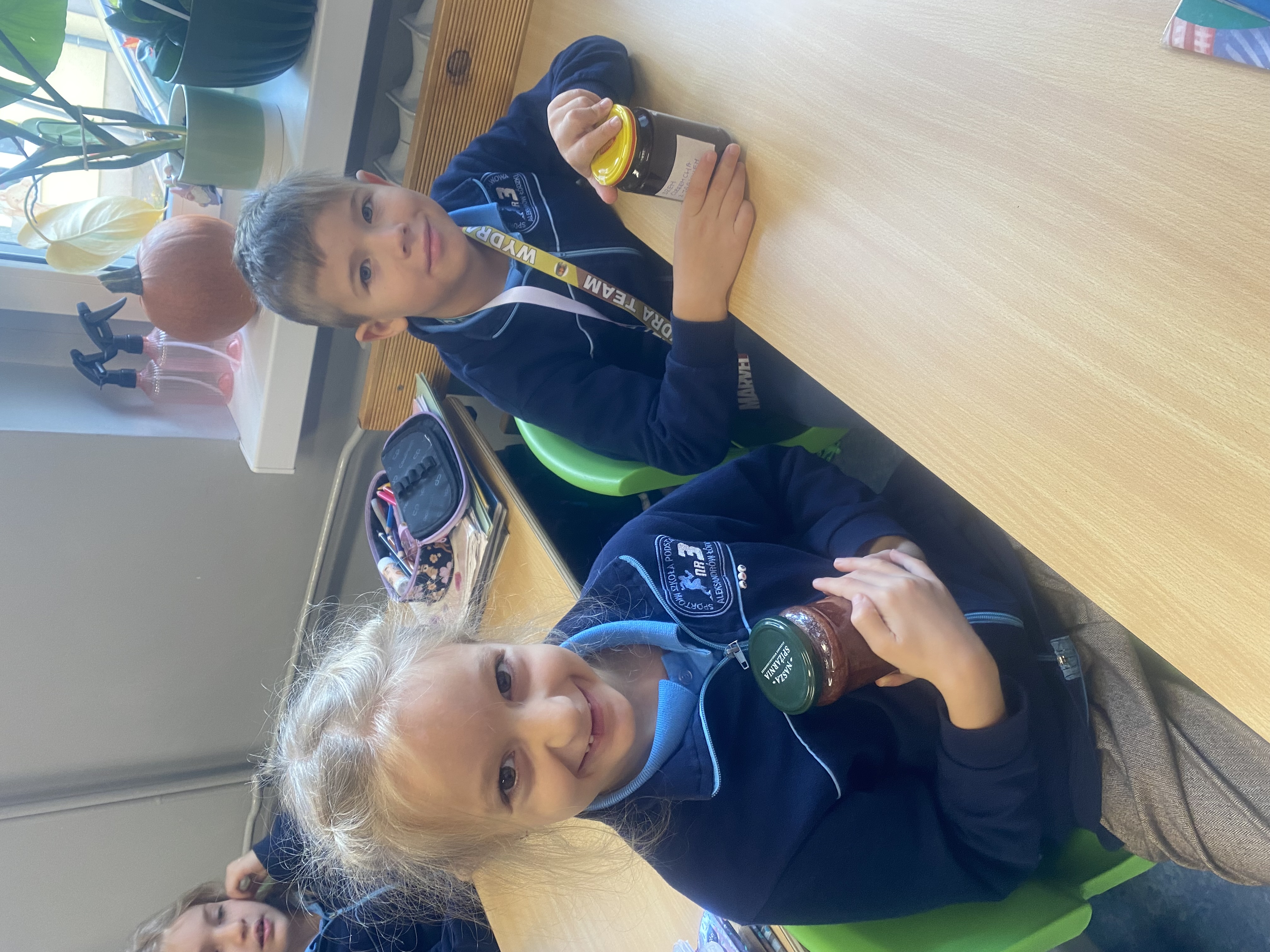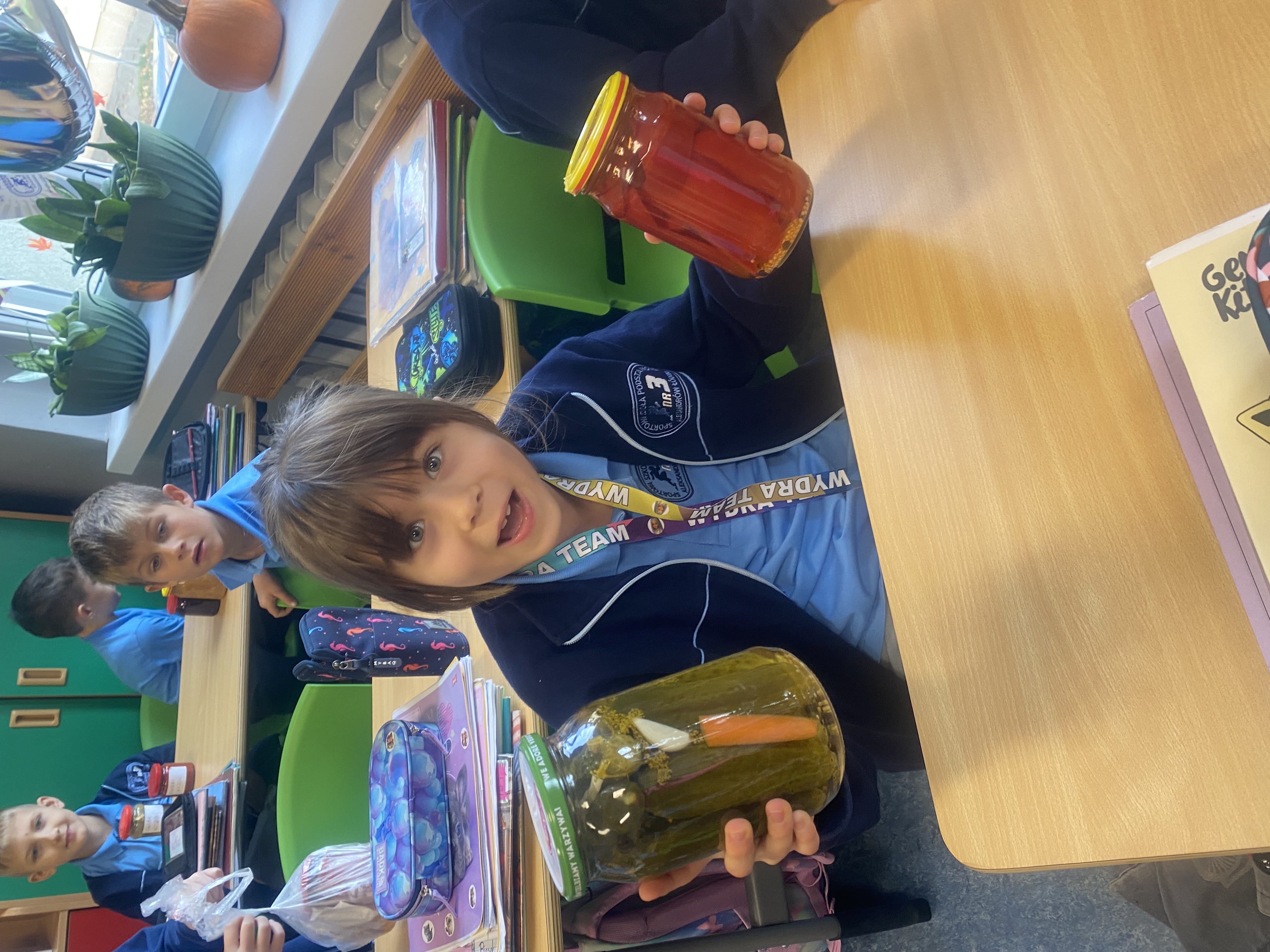 21 października 2025 r. w naszej klasie obchodziliśmy Dzień Słoika! To był pyszny, pachnący i pełen radości dzień – pełen smaków jesieni, uśmiechów i ciekawych rozmów o tym, jak powstają domowe przetwory. Przynieśliśmy do szkoły swoje ulubione słoiczki z domowymi przetworami: dżemami, konfiturami, kiszonymi ogórkami, paprykami, sałatkami, sokami i kompotami. Każdy z nas mógł spróbować różnych smaków i dowiedzieć się, jak powstają takie smakołyki. Rozmawialiśmy także o zdrowym odżywianiu i o tym, dlaczego warto robić zapasy na zimę.