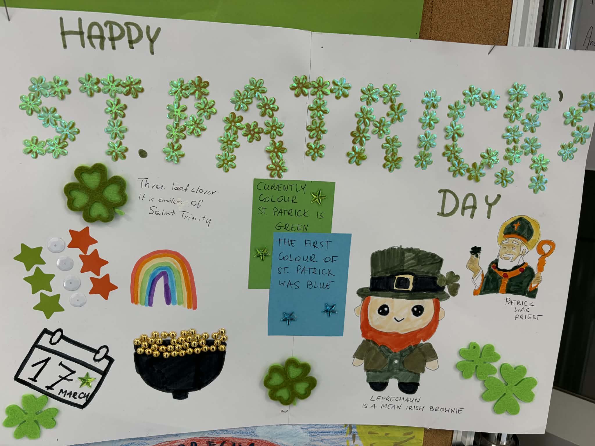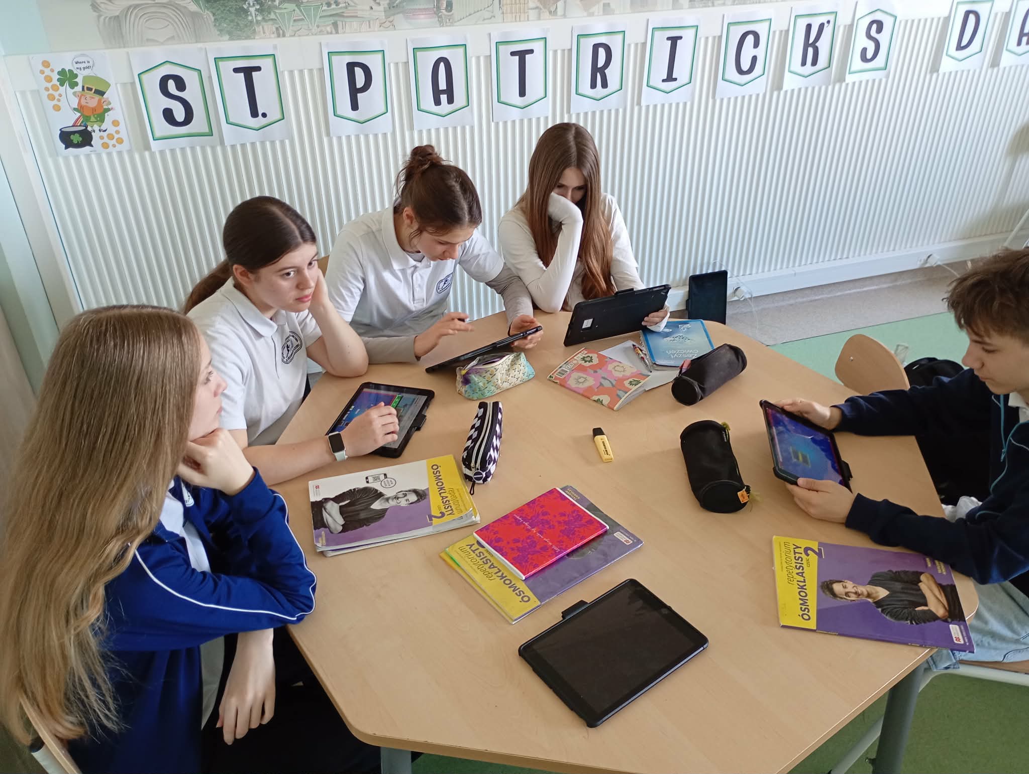W tym dniu korytarze zdobiły dekoracje w kolorze zielonym, skrzaty, koniczynki oraz symbole związane z Irlandią. Uczniowie i nauczyciele przyszli ubrani na zielono.