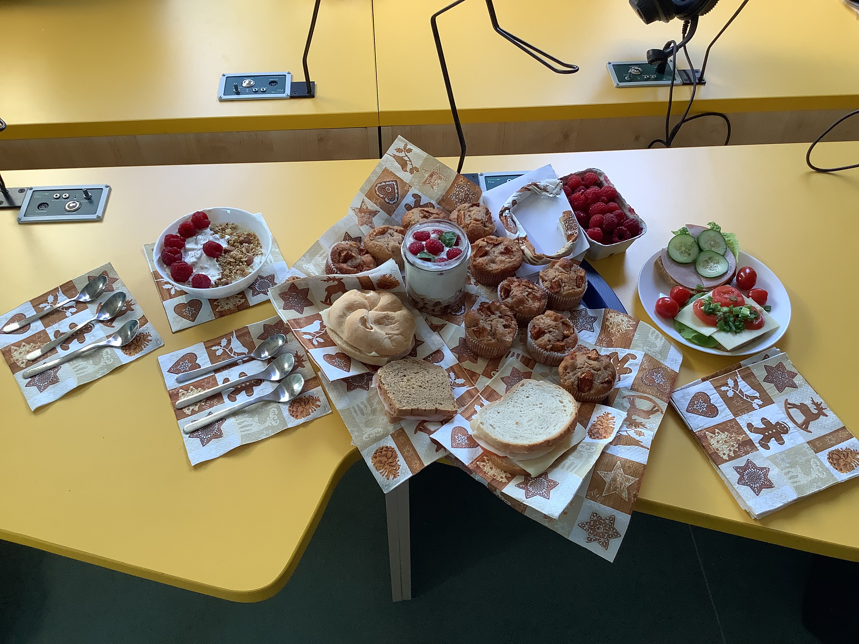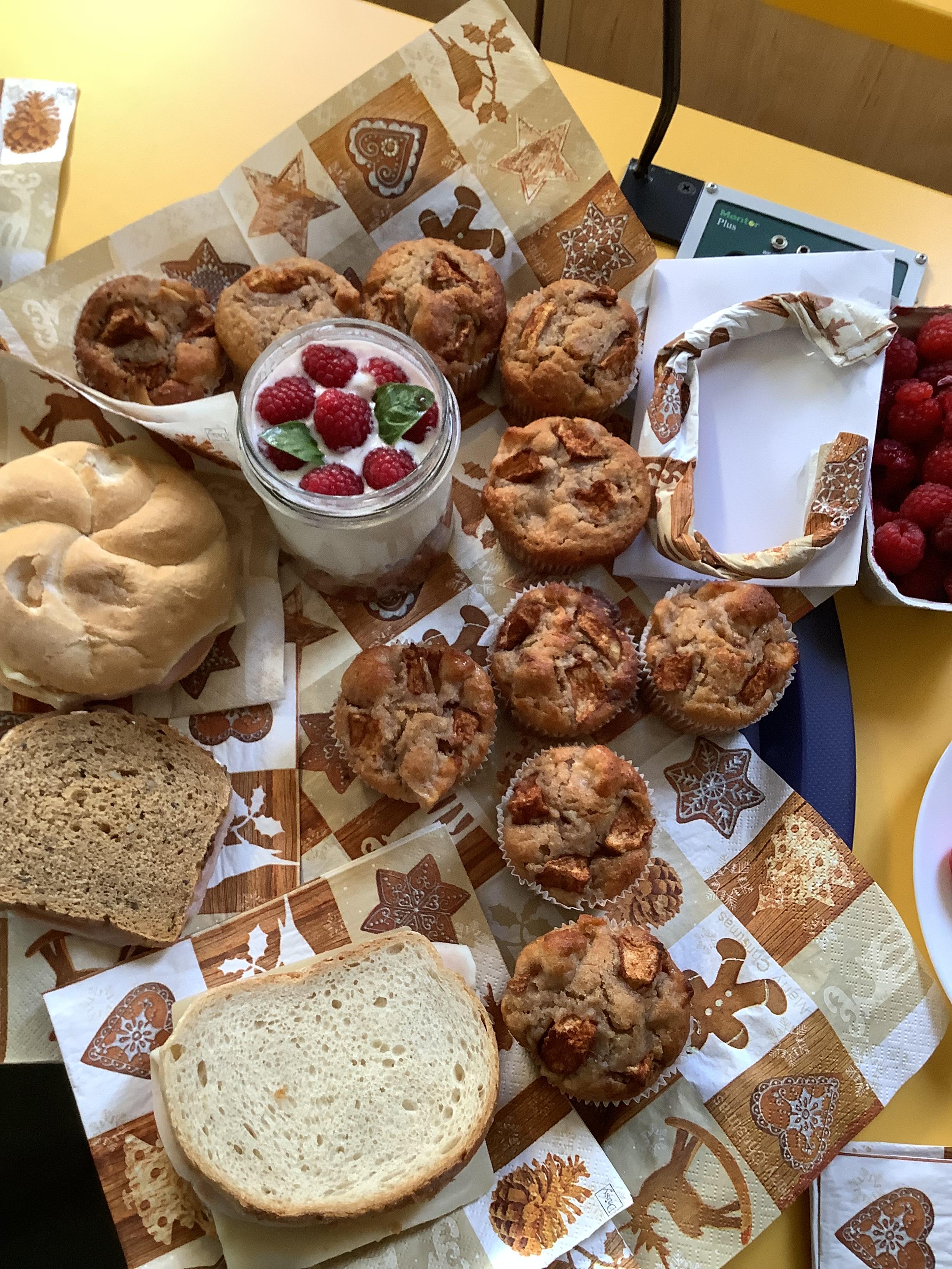 Dziś 7 listopada na lekcji wychowawczej obchodziliśmy Dzień Zdrowego Żywienia. Wspólnie przygotowaliśmy smaczne śniadanie. Wielkie brawa dla Adama Mikołajczyka, który zrobił zdrowe muffiny z jabkiem i poczęstował nas. Na lekcję zaprosiliśmy P. Pielęgniarkę. Wspólnie wykonaliśmy układ naszej klasowej cyfry i literki z muffinek. Kuba Kołodziejczak i Julia Nowak przygotowali musli ze zdrowymi dodatkami. Oczywiście królowały kanapki. Rozmawialiśmy o wpływie zdrowego jedzenia na nasz organizm. Było bardzo smacznie!