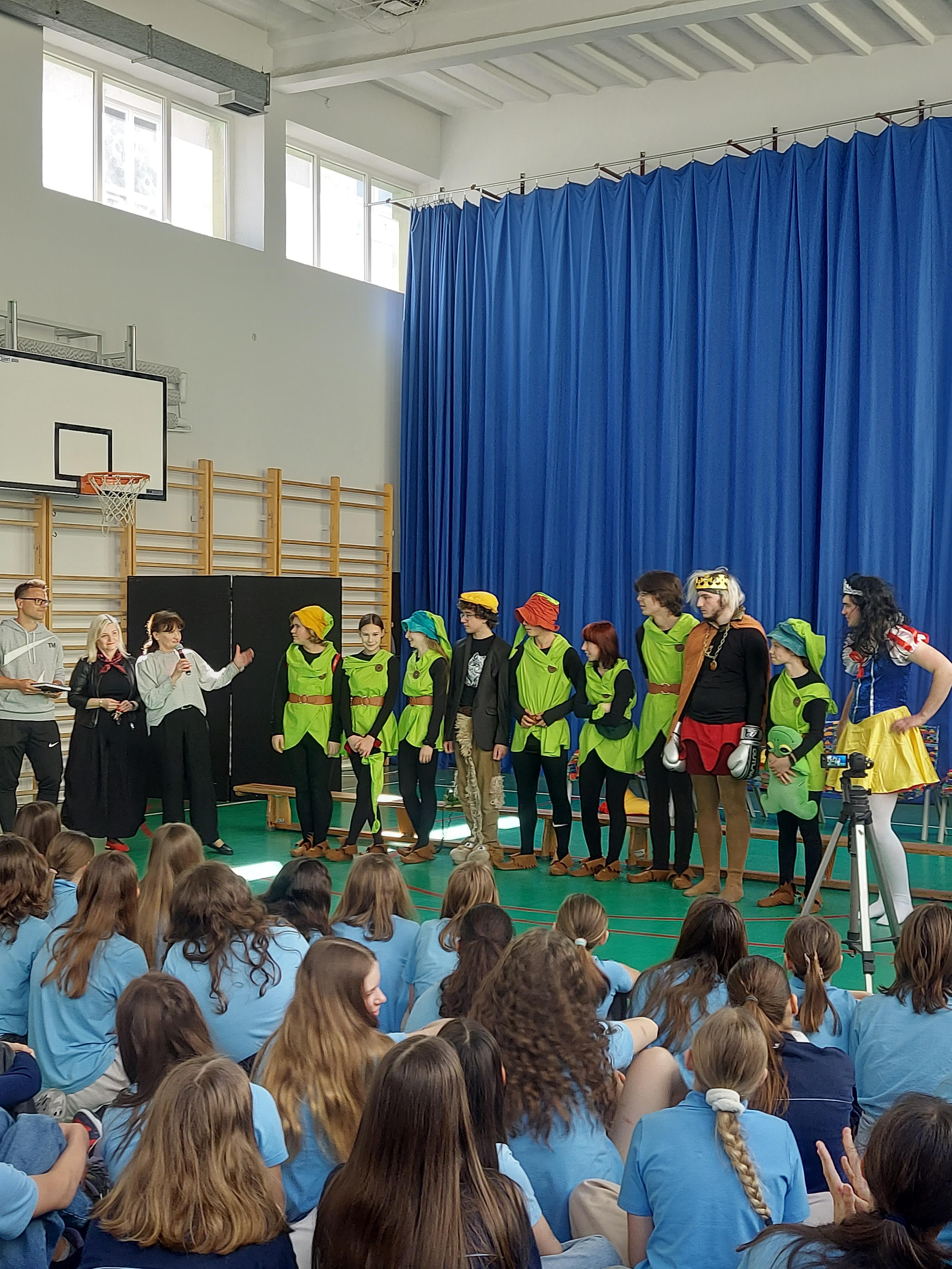 Dnia 16 kwietnia 2025r. świętowaliśmy w szkole „Frankofonię wiosennie”. Wydarzenia kulturalne związane z kulturą i cywilizacją francuską odbywają się na całym świecie w marcu i kwietniu. Także sportowa Trójka, w której język francuski jest również obecny wpisuje się w propagowanie nauczania języka francuskiego. Tak więc, francuska grupa teatralno - recytatorska pod kierunkiem Inki Serdakowskiej zaprezentowała wesoły spektakl w wersji francusko-polskiej pod tytułem „Królewna Śmieszka” w reżyserii i według własnego scenariusza opiekunki grupy. Uczniowie klas V,VI,VII i VIII mieli okazję posłuchać swoich starszych i młodszych kolegów, którzy posługują się swobodnie językiem francuskim i sprawnie funkcjonują na scenie. Dziękujemy Nauczycielom i młodzieży za mile i wesoło spędzony czas we frankofońskiej atmosferze.