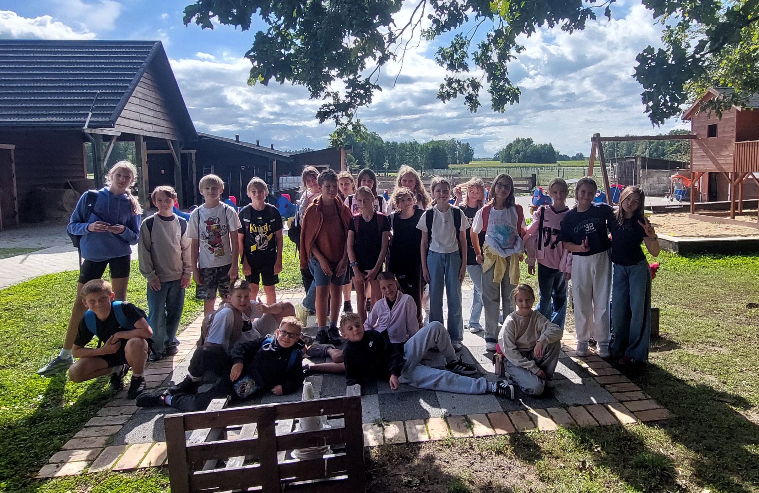 Dnia 16 września wybraliśmy się na wycieczkę do gospodarstwa agroturystycznego - "Siedlisko pod dębami". Podczas wizyty mieliśmy okazję nakarmić zwierzęta, co sprawiło dużą radość wszystkim uczniom. Pani Justyna opowiedziała nam o każdym z nich. Dodatkowo bawiliśmy się na świeżym powietrzu, korzystając z atrakcji na terenie gospodarstwa. Na zakończenie rozpaliliśmy ognisko i piekliśmy kiełbaski. Integracja i rekreacja w otoczeniu przyrody sprawiły nam wiele przyjemności.