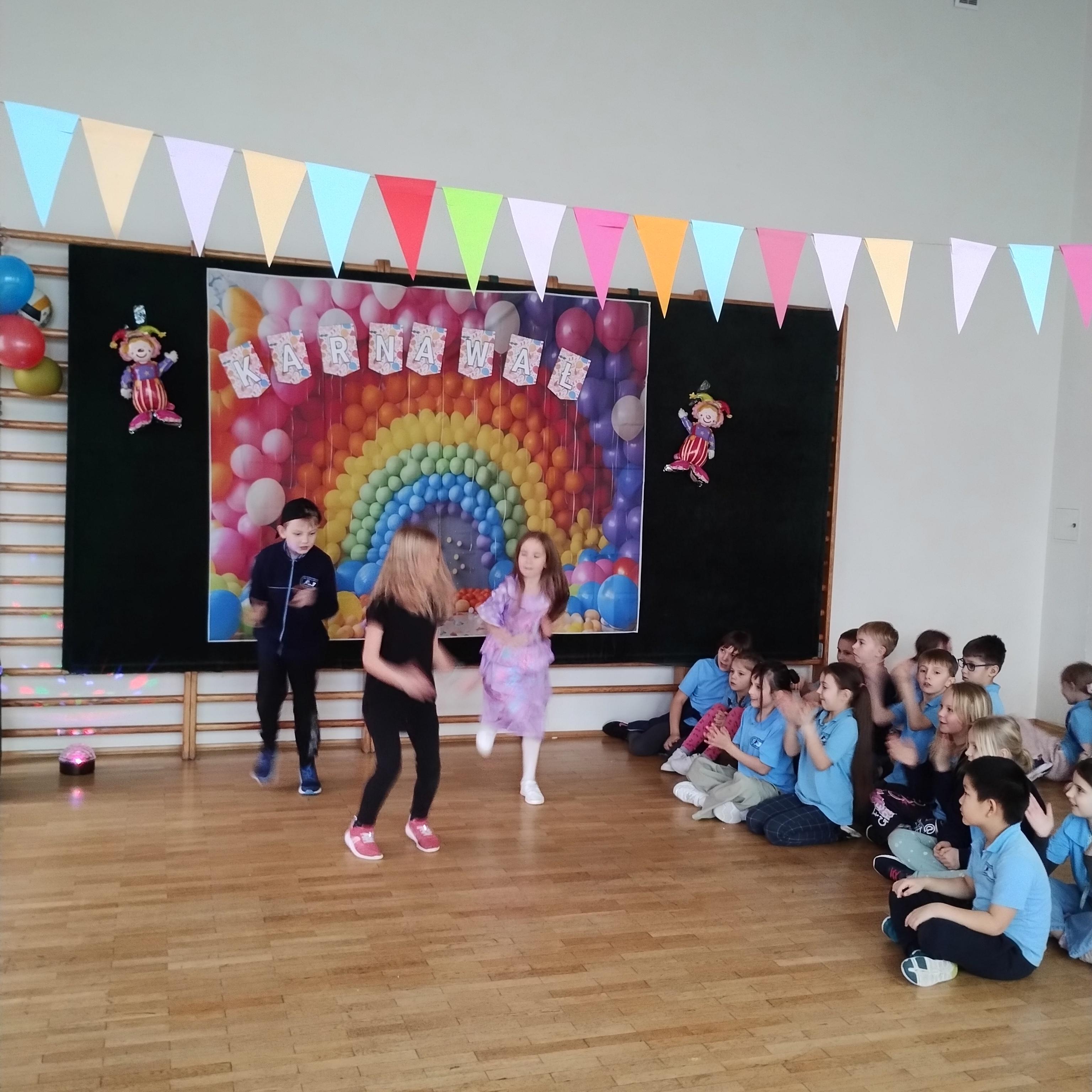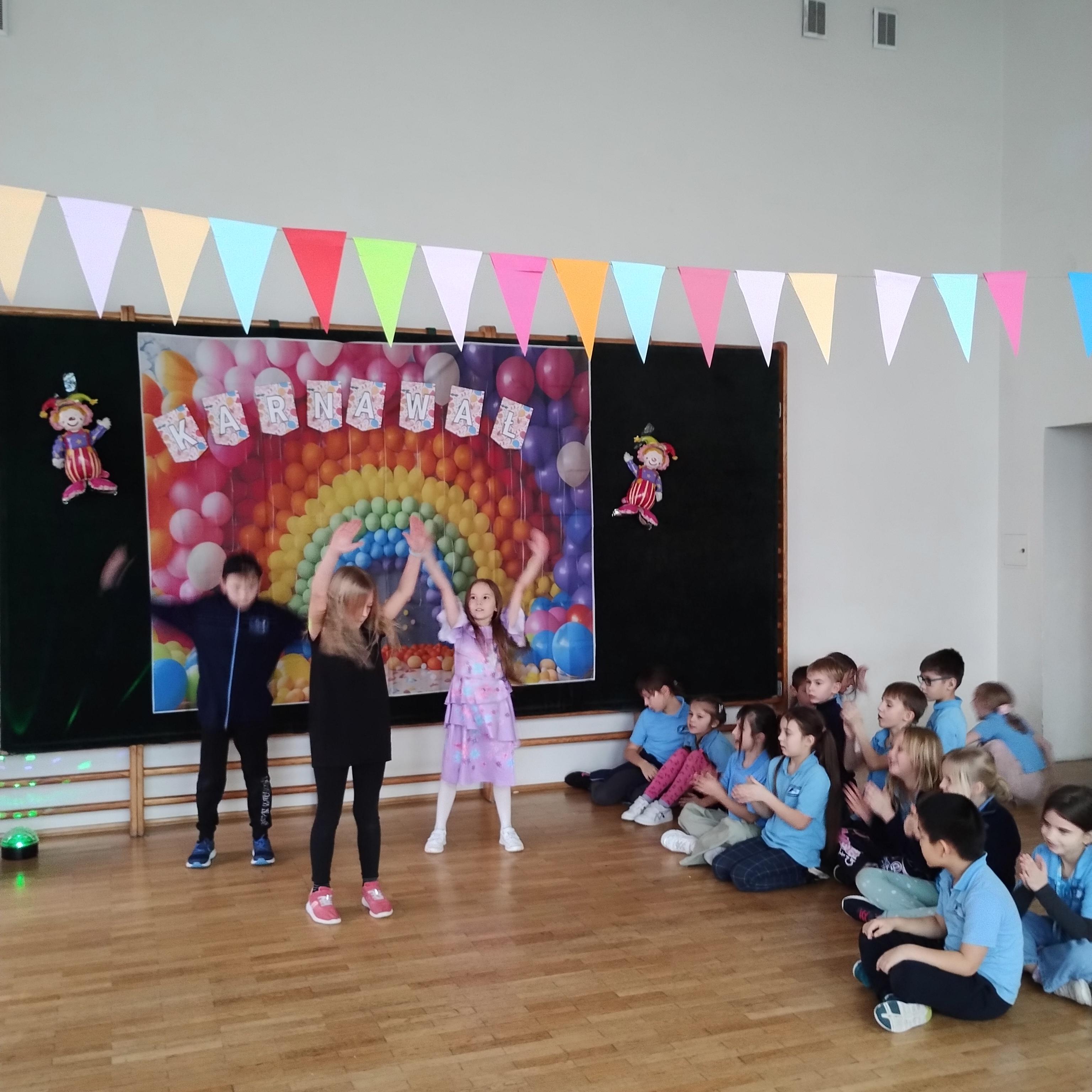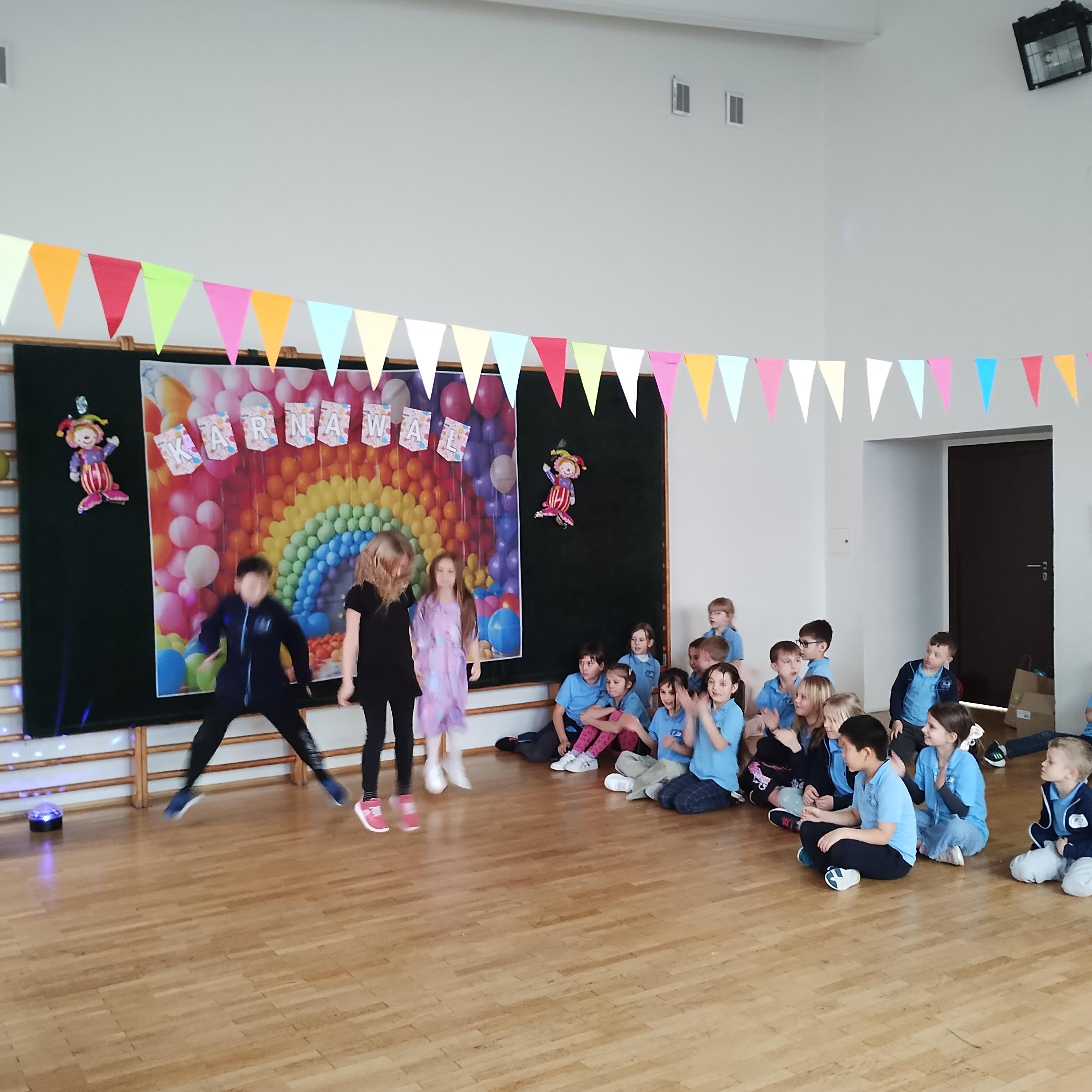 Na balu karnawalowym zorganizowanym dla uczestników świetlicy szkolnej odbył się konkurs tańca. Natalka, Hania i Szymon zaprezentowali wspaniały układ taneczny. Gratulujemy.