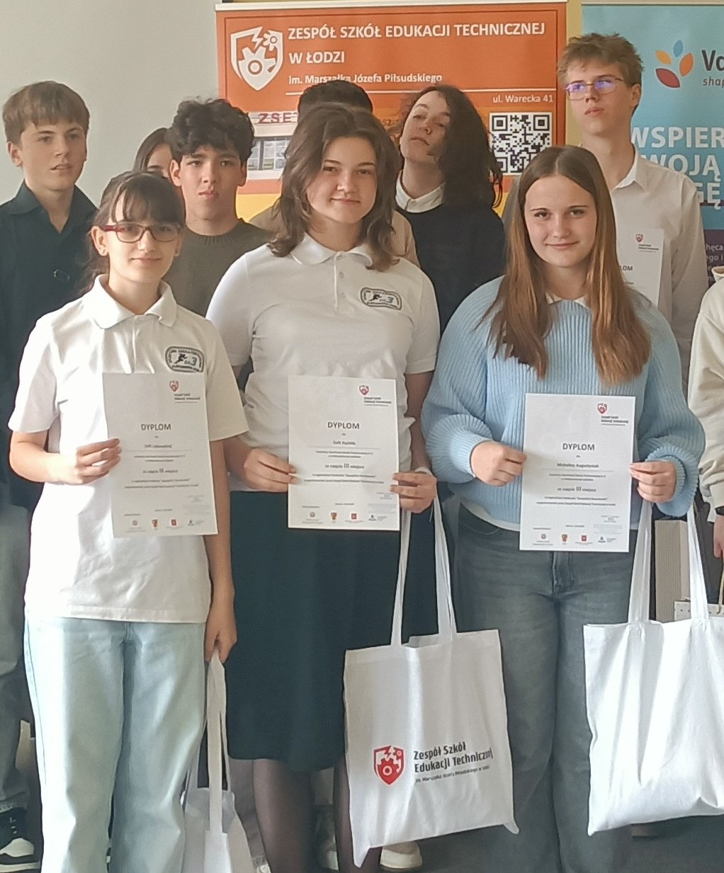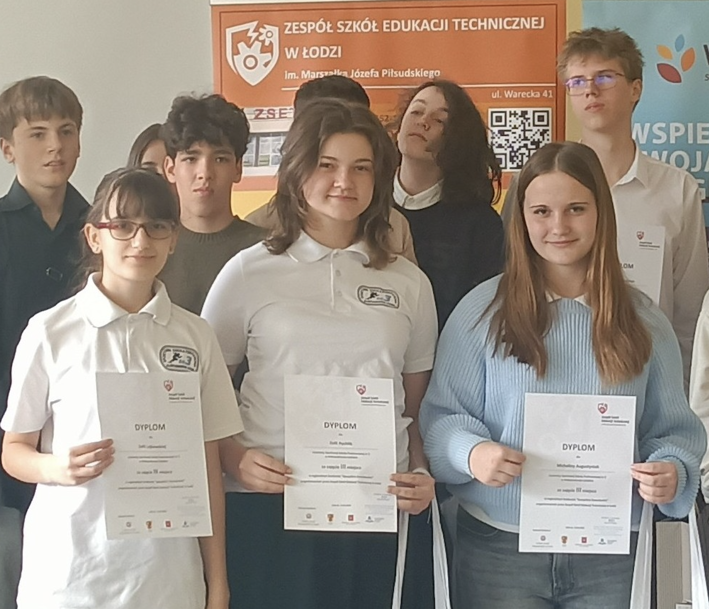 Miło nam poinformować, że uczennice z klasy VIII d: Michalina Augustyniak, Zofia Lejkowska i Zofia Rychlik zajęły III miejsce w regionalnym konkursie "Specjalista Zawodowiec", który odbył się w Zespole Szkół Edukacji Technicznej w Łodzi. Dziewczyny poza wiadomościami z zakresu matematyki i fizyki wykazały się zdolnościami technicznymi pokonując liczną konkurencję.