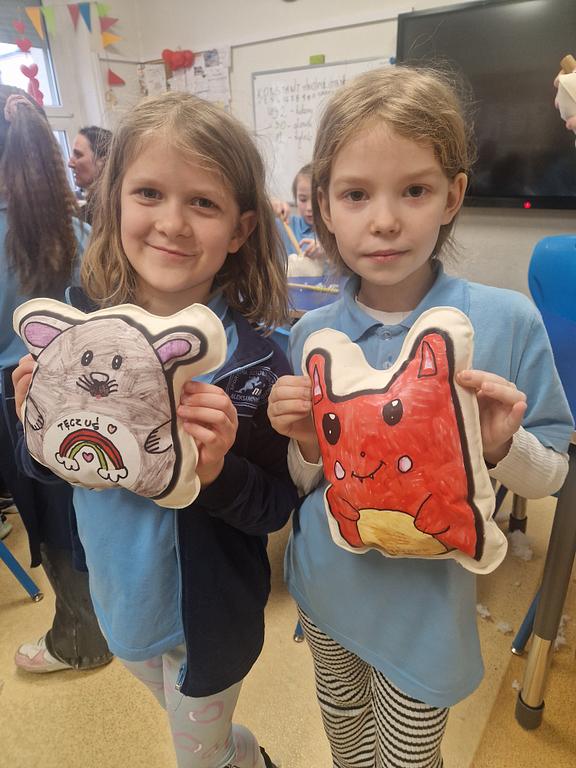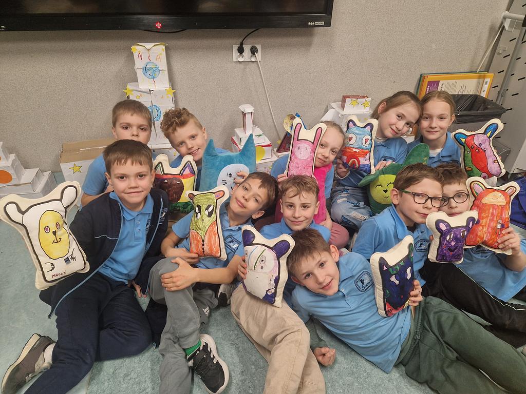 Już 14 stycznia każdy uczeń zaprojektował i nadał imię swojej maskotce – STEAMIAKOWI. Następnie projekty zostały przeniesione na materiał,