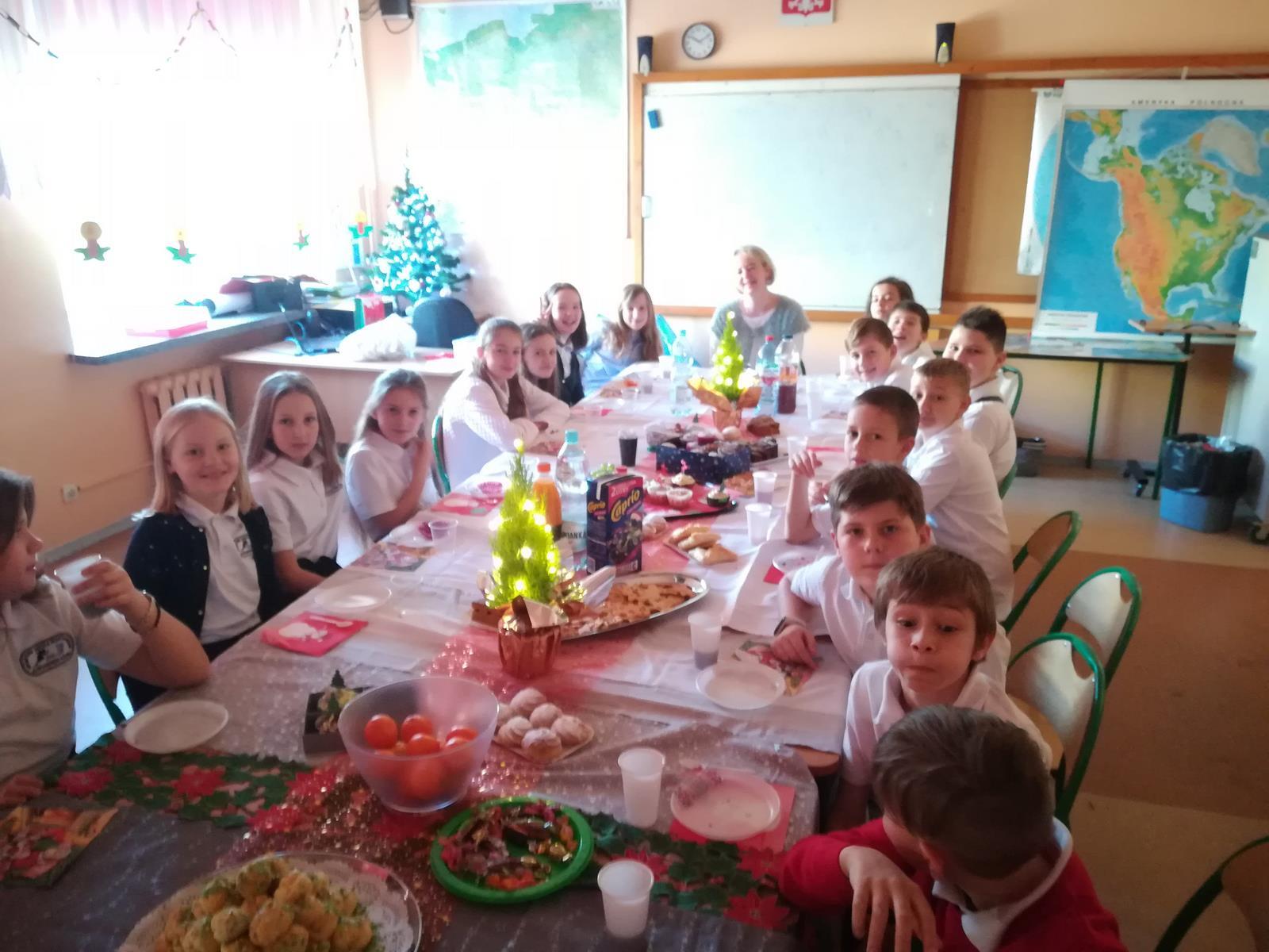20 grudnia odbyła się w naszej klasie wigilia, na której mogliśmy podzielić się opłatkiem i złożyć sobie życzenia. Były prezenty, śpiewaliśmy kolędy i częstowaliśmy się smakołykami przygotowanymi przez naszych rodziców. Wyjątkowo i miło spędziliśmy ten czas. Po wigilii klasowej uczestniczyliśmy w Świątecznym Koncercie. Wesołych Świąt!