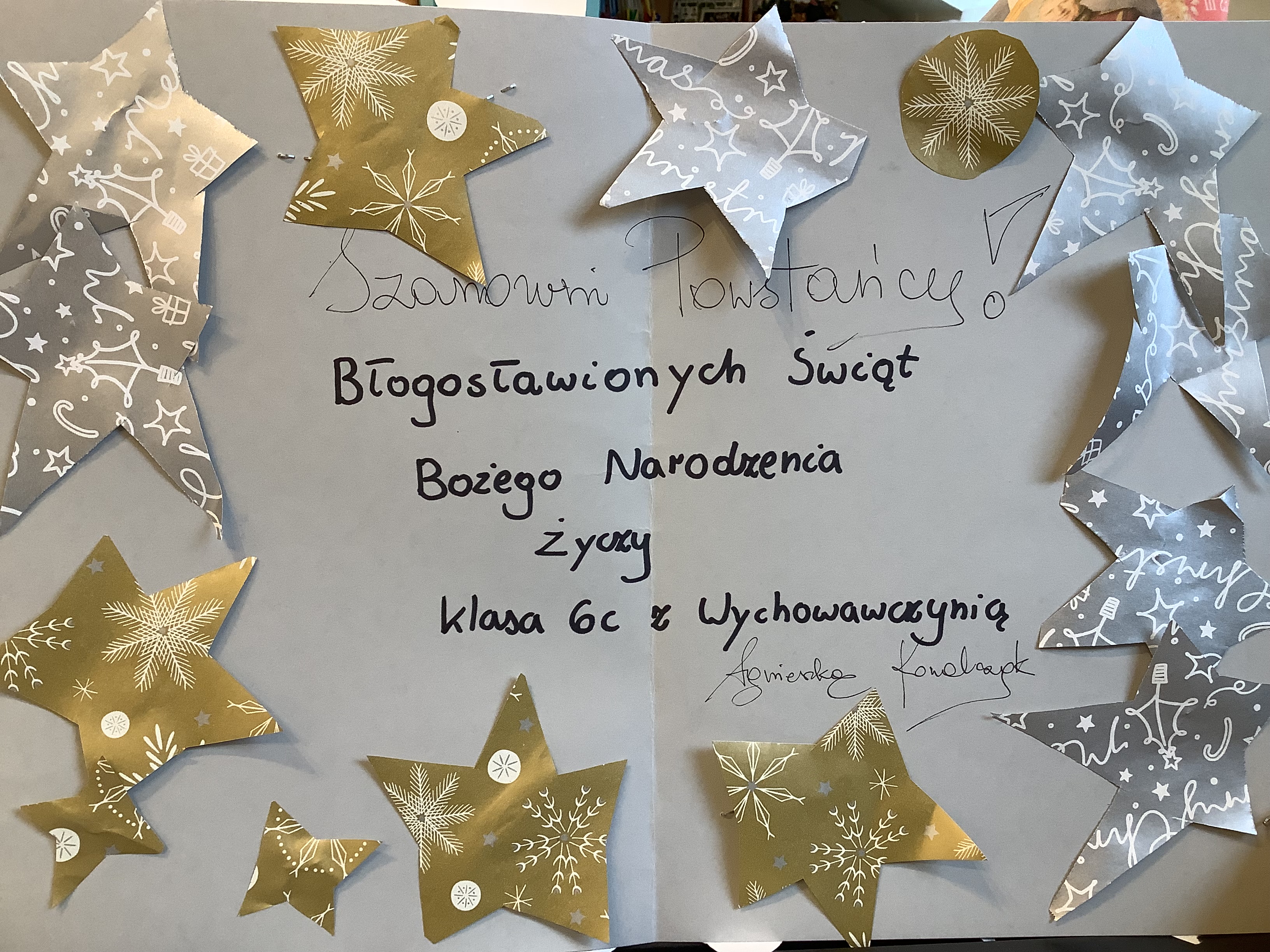 Jak co roku w ostatni dzień szkoły przed świętami mieliśmy klasową wigilie. Również składaliśmy życzenia Powstańcom Warszawskim i wysłaliśmy własnoręcznie zrobioną kartkę. Do siego roku!!!!