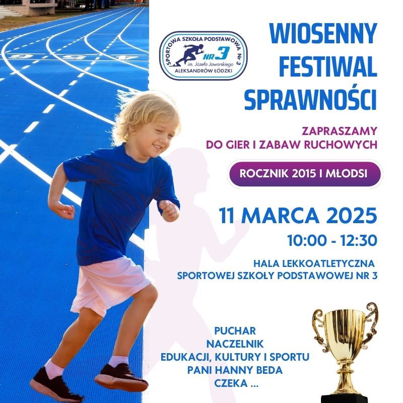 11 marca 2025 r. zapraszamy do Sportowej "3" uczniów z rocznika 2015 i młodszych do udziału w wiosennych zawodach sportowych.